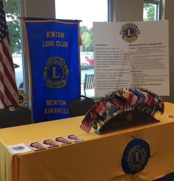 Outgoing Benton Lions Club President Rudy Macintosh is joined by Kimble Schneider the President of the newly formed Saline County Professional Women's Lion Club